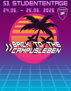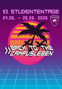 - Studententage 2025Klickt hier für die Informationen zu den 52. Studententage vom 25. Juni bis zum 27. Juni 2025 unter dem Motto: Campusfieber: Somme, Sonne, Kaktus